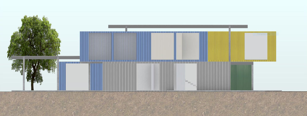 The Campo project is a non-profit collaborative design project for the Bridge of Mission International, an organization in Port-au-Prince, Haiti. The master plan consists of six phases: a chapel, clinic, and schools for the local community. As the site is located in a remote area with no infrastructure such as water supply or electricity, the goal was to meet the basic needs such as ventilation and shade and being time and cost-effective by utilizing accessible materials and a self-sufficient design. As such, using used containers as the primary building material reduced significant shipping and construction time. They are also reusable for future projects or construction needs. To provide ventilation and shade, six containers of different sizes surround the main assembly area creating gaps between each container to provide air flow throughout the structures and covering them with lifted slate metal panels provides ample shade.